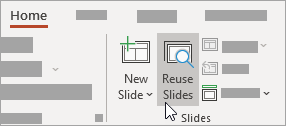 Powerpoint Reuse Slides is a native Powerpoint feature, allowing you to reuse Powerpoint slides from existing presentations.